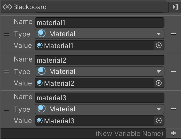 2. In the Object Variable section of the Blackboard, create a new variable called “material1”.
