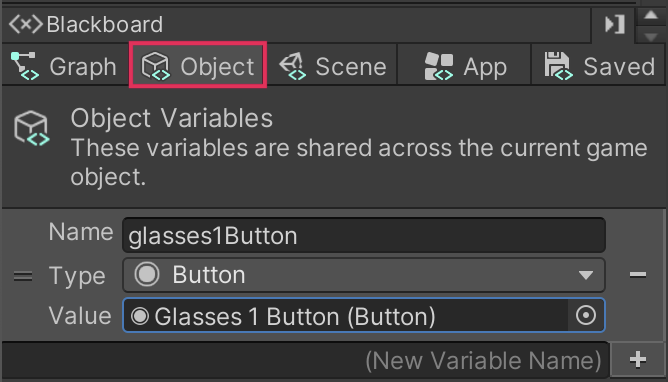 1. In the Script Graph Blackboard, select the Object Variable tab.