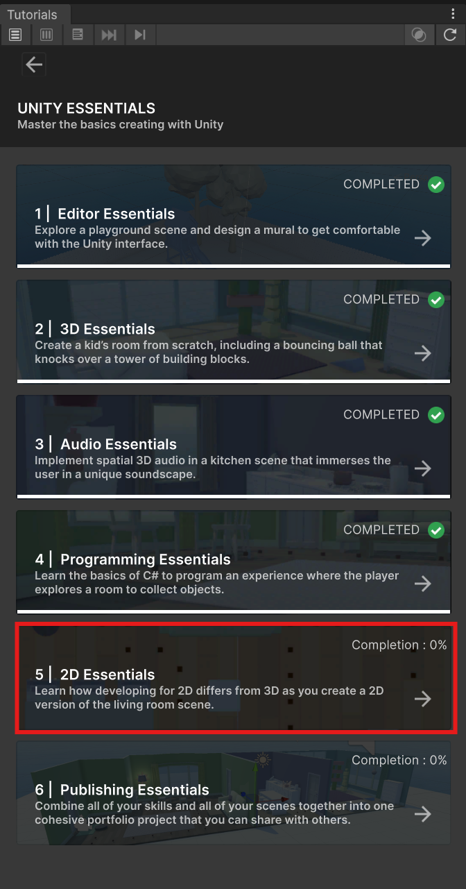 Go back to the Unity Editor, follow the in-Editor instructions, and master the 2D Essentials!