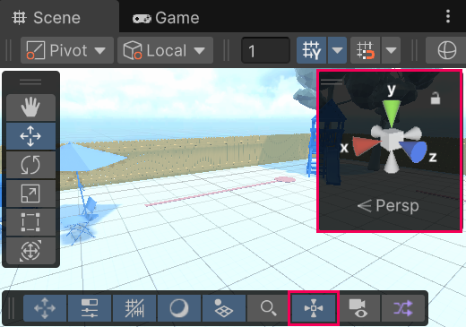 1. To be able to see the Scene view gizmos more clearly against the background, right-click them and select Show background.