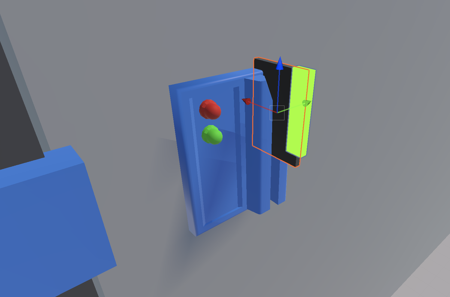 In the above video, the green line represents the pull direction vector, the sliding door itself represents the actual door direction, and the red line represents the dot product of the pull direction and the door direction (or in other words, pull direction · door direction).