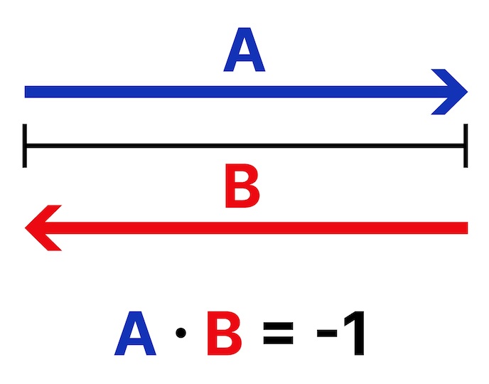 If two vectors point in opposite directions, the dot product becomes negative.