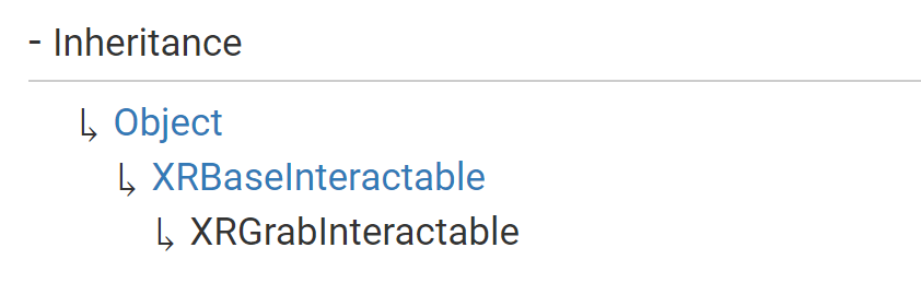 Also, note that since XRGrabInteractable inherits from XRBaseInteractable, it also inherits all the properties and methods from that class too.