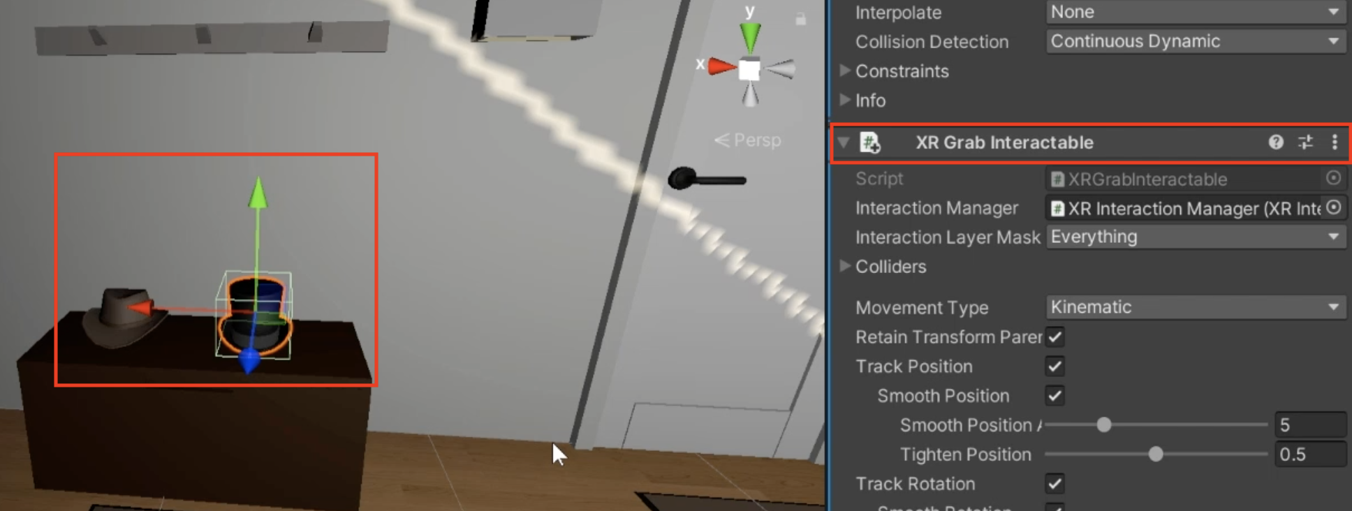 - Set each of the hook and head socket objects’ Interaction Layer Masks property to only the Hats layer.