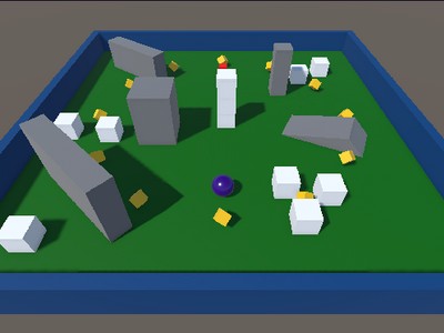 Play as the ball and collect all 12 collectables to win. Move the white blocks to help add obstacles to avoid the Enemy player. Avoid the Enemy player or lose the game.