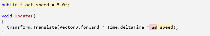 - Replace the speed value in the Translate method with the speed variable, then test