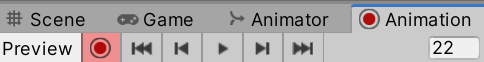 Similar to Preview mode, enabling Record mode will temporarily set the values of the Animation Clip to the GameObject. The critical difference is that any changes to properties you make while this mode is enabled will be recorded to the Animation Clip.