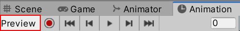 If the Animation Clip is being viewed in context, and you select one of the playhead position buttons or change the numerical field, Preview mode will be activated.