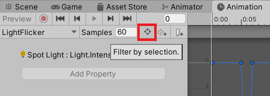 2. In the Animation window, click Filter by selection (to the right of the Animation Clip name).