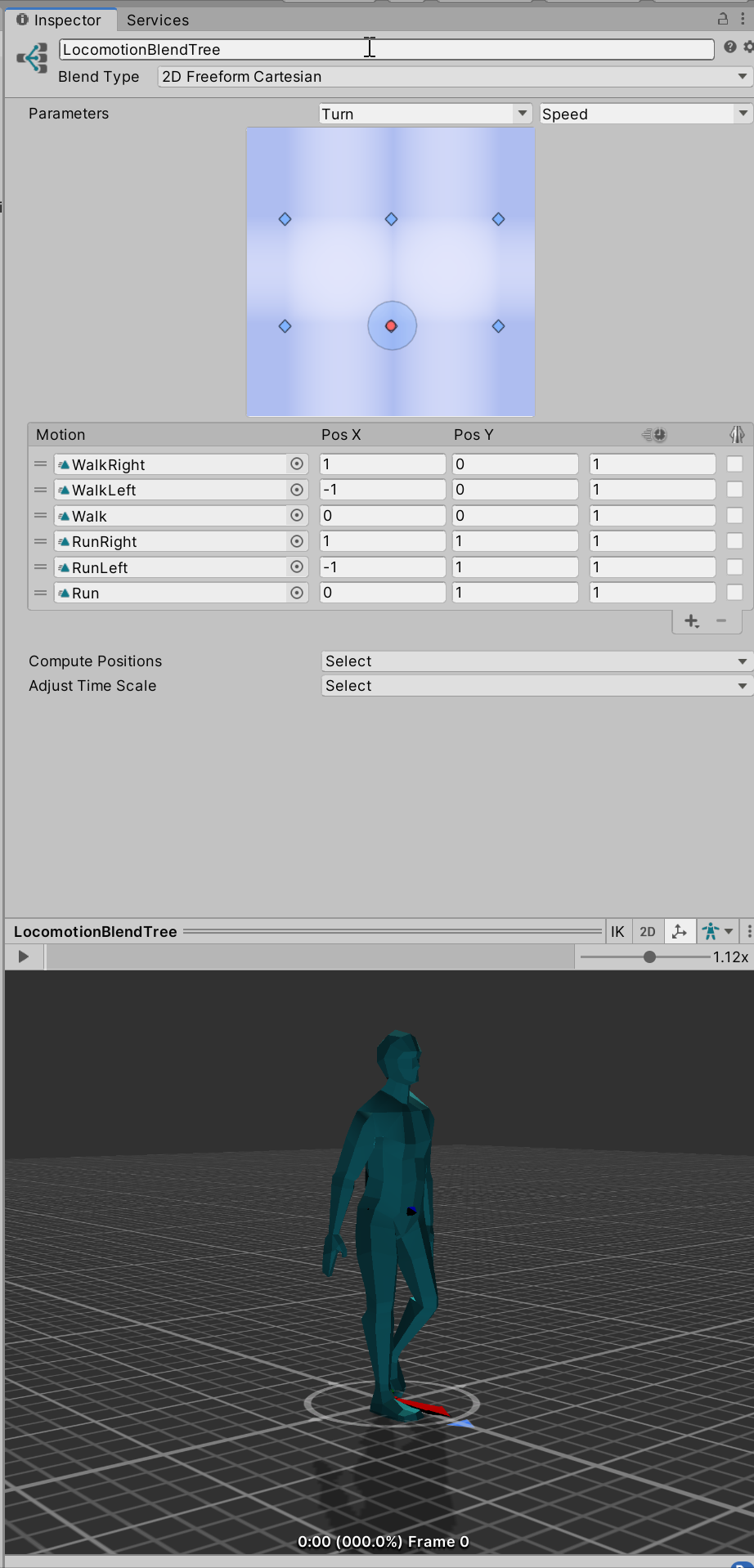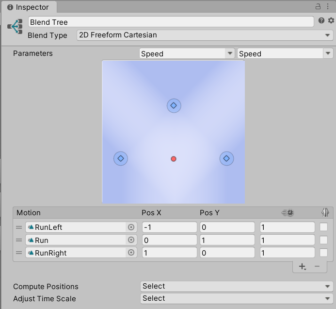 The exact calculation of the weights for the other Blend Tree types is beyond the scope of this beginner tutorial. For now, you just need to know when to use each type.