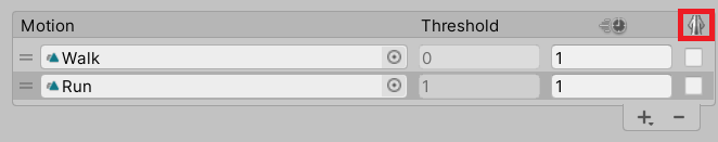For 1D and 2D Blend Trees that contain Motions which have Root Motion, there are automation options below the Motion list. These are Compute Thresholds for 1D Blend Trees and Compute Positions for 2D Blend Trees.