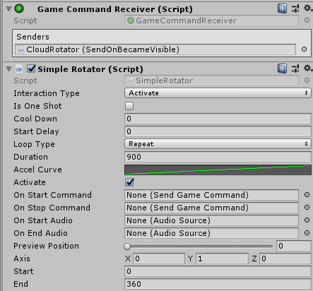 - Activate: Default Setting: false Whether the command has been received and the GameObject is currently rotating.