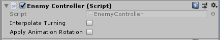 The Enemy Controller script is the base class for other more specific Enemy controller components. It contains the common properties for these specific components: