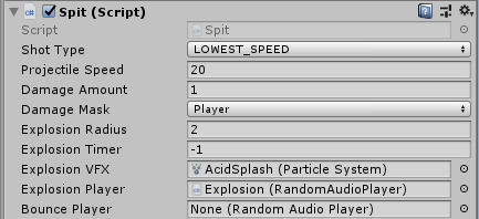- Explosion Timer: If this is greater than zero, the projectile will explode only after that time. Otherwise, if less than 0, the projectile will explode on contact.