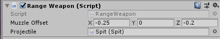- Muzzle Offset Where the projectile comes from. The Muzzle Offset is visualized in the SceneView as a yellow cross which helps position it.