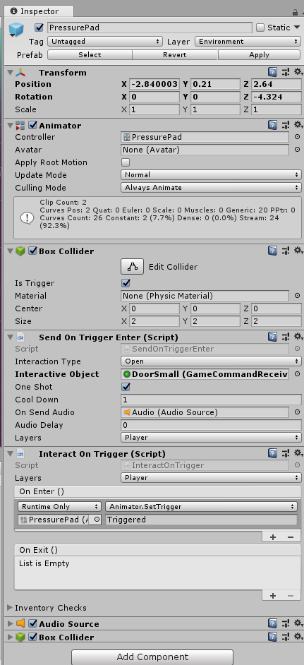 - Interact On Trigger: Plays an animation when Ellen stands on the pad.