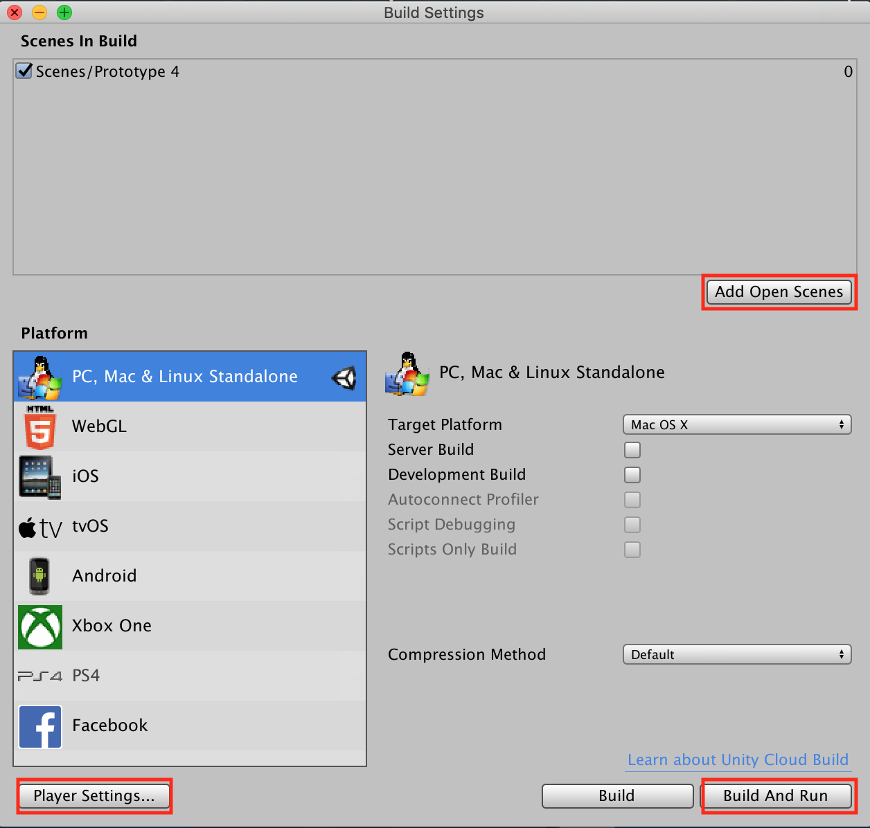 - In Unity, click File > Build Settings, then click Add Open Scenes to add your scene