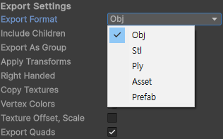 The Export Settings window shows various properties, from Export Format to Include Children, Apply Transforms, Copy Textures, and Vertex Colors. You can hover over the names of each of these properties to get an insight into what they indicate. When you are ready, select the Export button at the end to finish exporting. Save the fileit in the path of your choice and choose a good name for it.