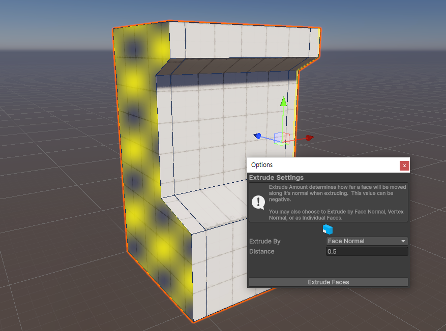 The sides of an arcade machine usually protrude. Select the left and right sides and use the Extrude Face tool to add a new bordered surface.