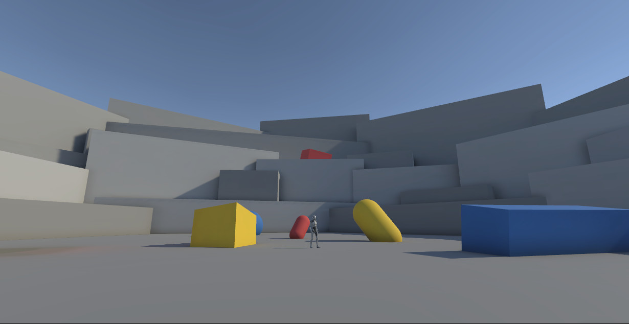 Wide angle shots allow the user to see the maximum amount of the environment at one time. For this reason, they’re excellent for establishing shots of new locations in an interactive experience. Take a look at a wide angle shot: