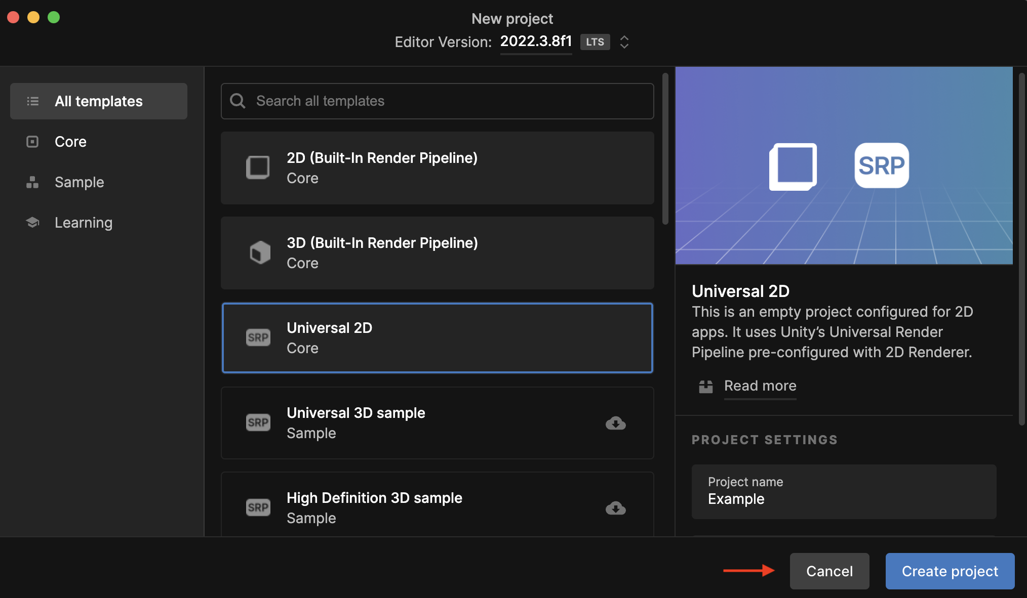 Once all templates have been downloaded, select the cancel button to exit the project creation process.