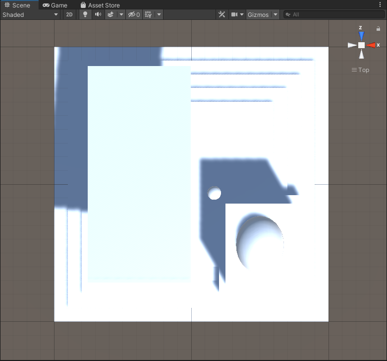 Tip: Locate the Gizmo at the upper-right corner of the Scene view window and select the y-axis. This will give you a top-down view of your scene. Make sure your sphere is positioned to fall down onto your structure.