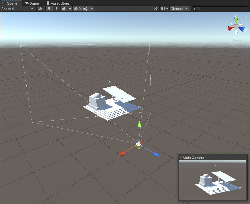Note: If you don’t see the camera icon as shown above, make sure your Gizmos are enabled. At the upper-right corner of the Scene view window, look for the word Gizmos and enable it (without opening the dropdown menu) so that it is shaded.