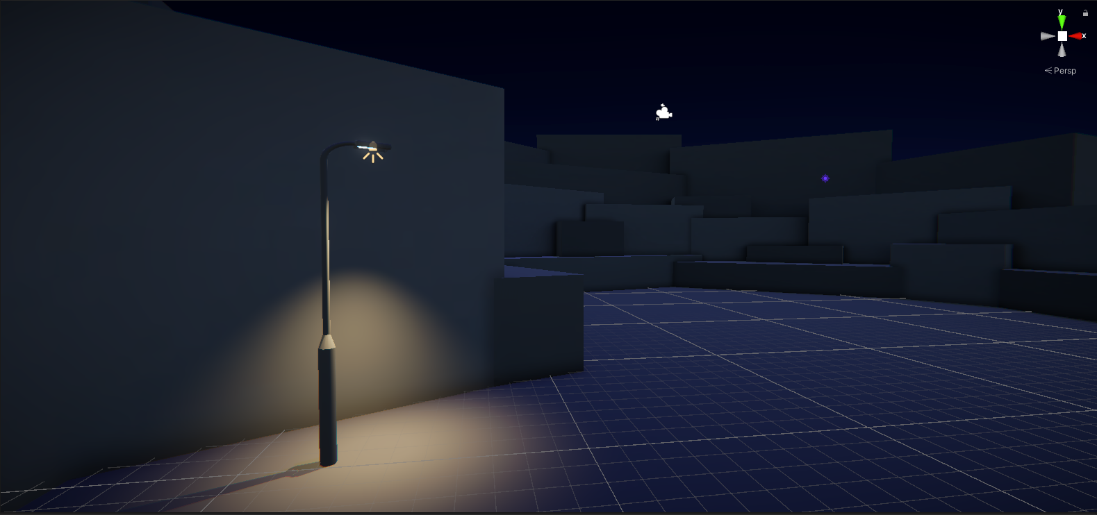 Now that you’ve practiced adding and configuring a street lamp prop, take some time to add more light sources to the space. As you’ll be working on shadows soon, make sure to include one area where street lamp shadows can be seen.