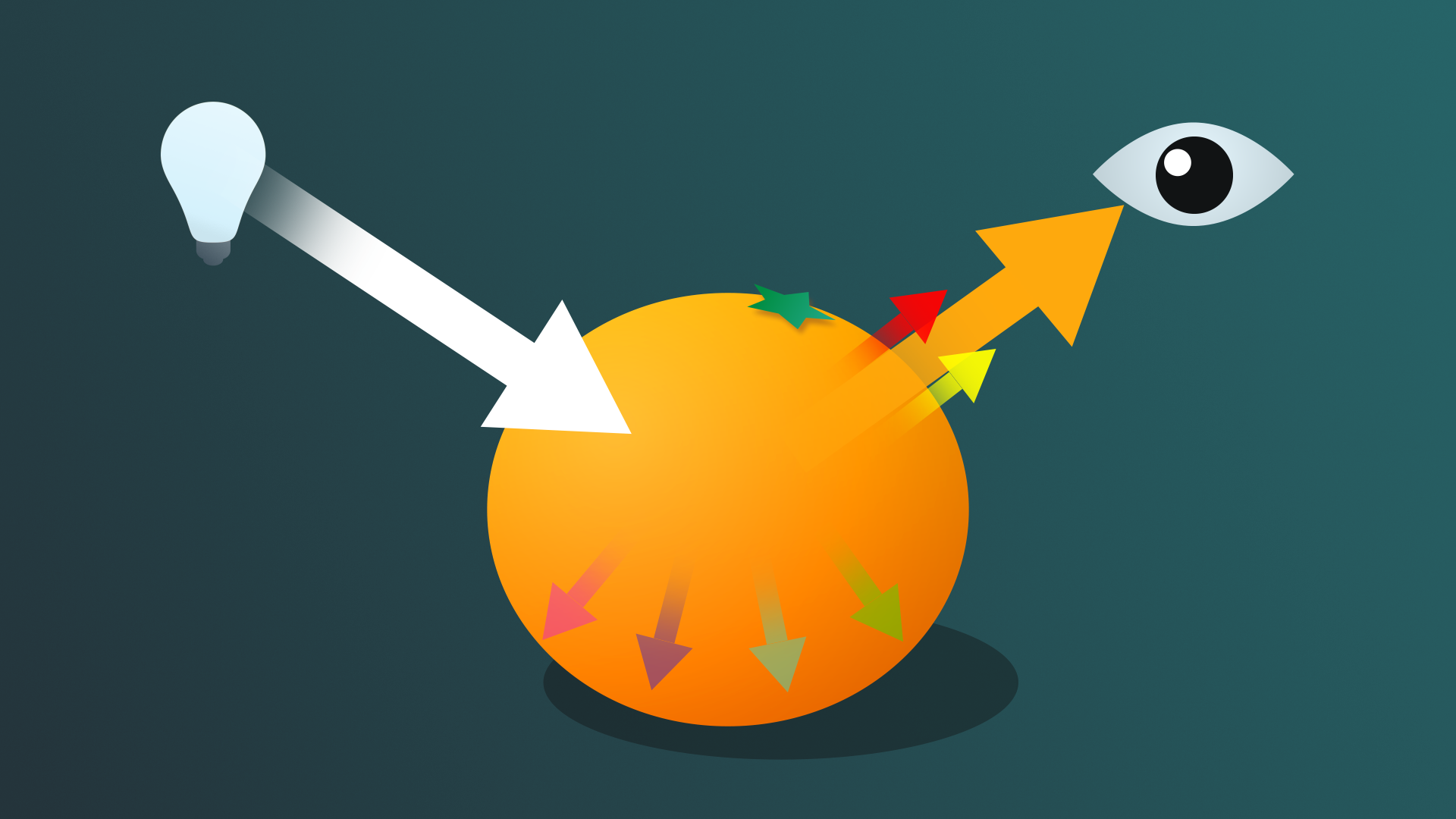The color of an object impacts how it absorbs and reflects light. When light waves hit an orange, for example, orange light is reflected and the rest of the colors in the spectrum are absorbed by the orange, so you won’t see them. When the reflected light hits a sensor (like the retina in your eye), you will perceive the orange as the color orange.