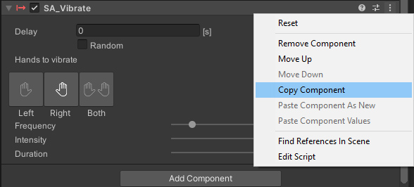 Then add the ‘Activate’ action showing the corresponding instruction and finally copy the vibrate action from the previous interaction as a New Component.