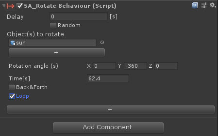 Inside the ‘Object to rotate’ drag the Sun (IO) and set the rotate behaviour accordingly: