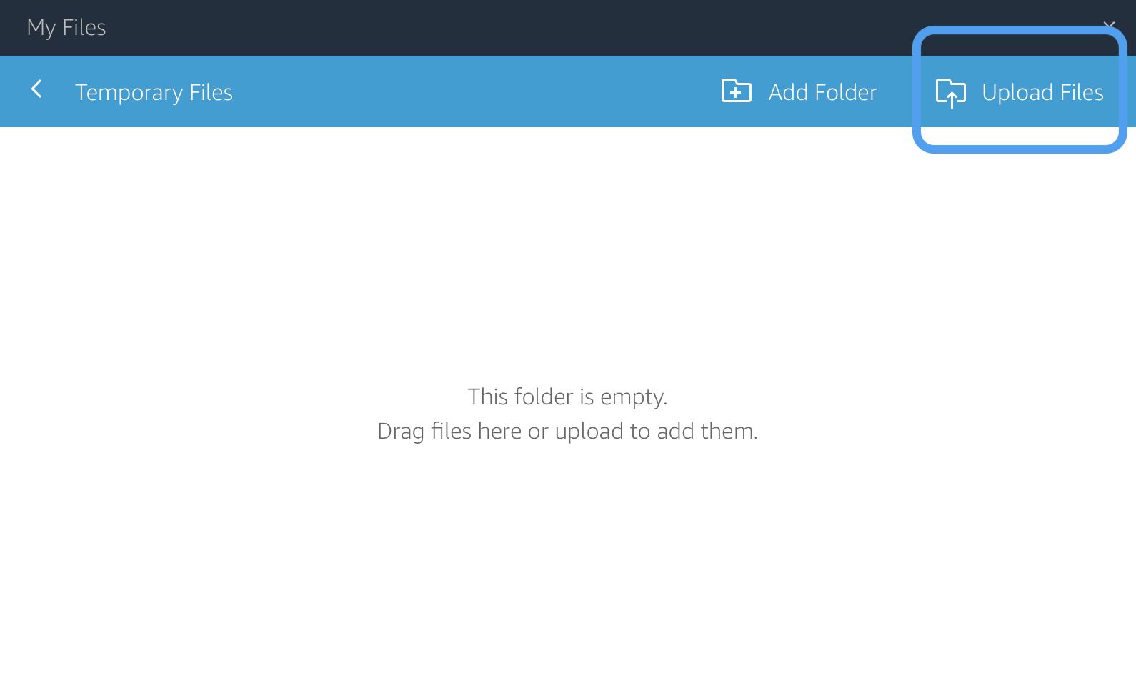 Double-click the ‘Temporary Files’ folder, then click the ‘Upload Files’ button.
