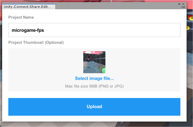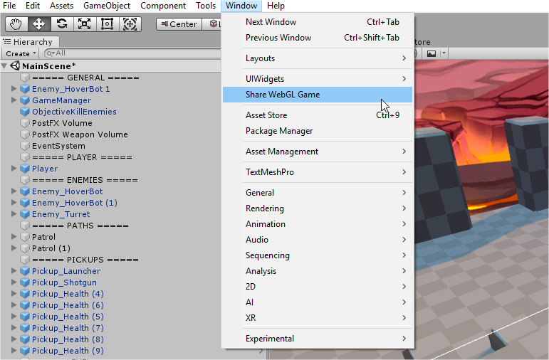 10. File メニューから、Window > Share WebGL Game の順にクリックします。