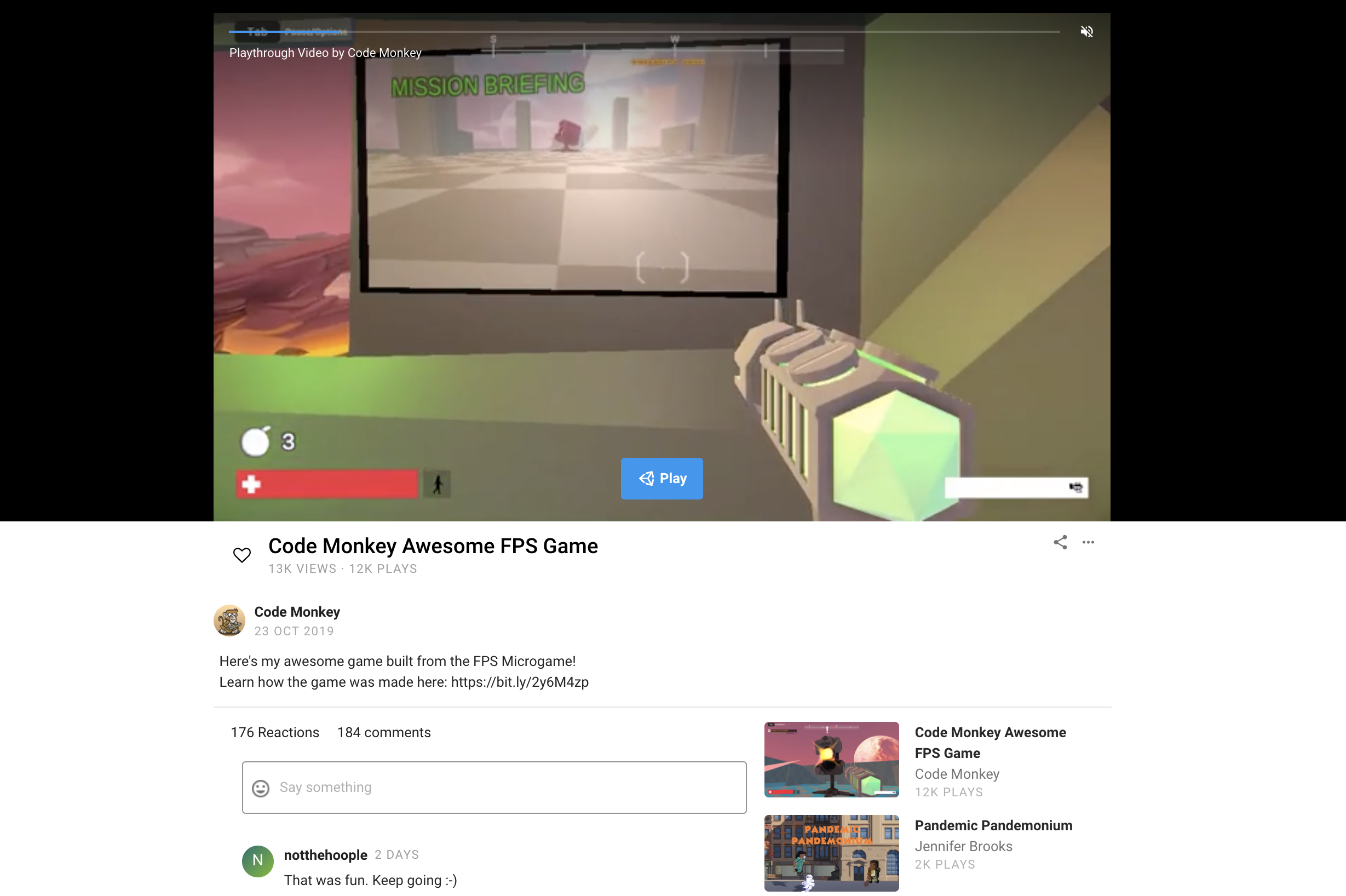 この例では、FPS Microgame を使用しますが、どの Microgame でも以下の手順を踏むことができます。
