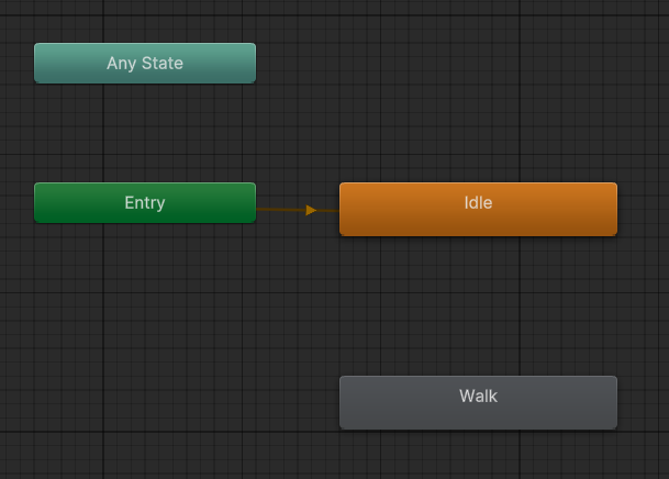 7. Select the Walk state to create a transition between the Idle and Walk states.