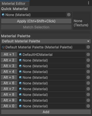 In the Material Palette, you can add or delete the number of palettes saved as scriptable objects.