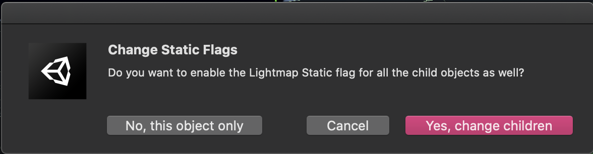 2. In the Change Static Flags dialog window that appears, select Yes, change children.