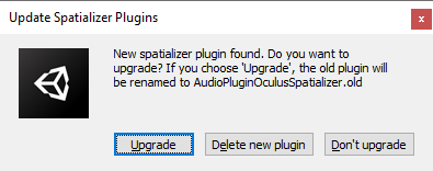9. The Unity Editor should now restart, using the newest version of the Oculus Audio Spatializer.