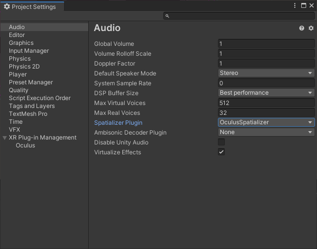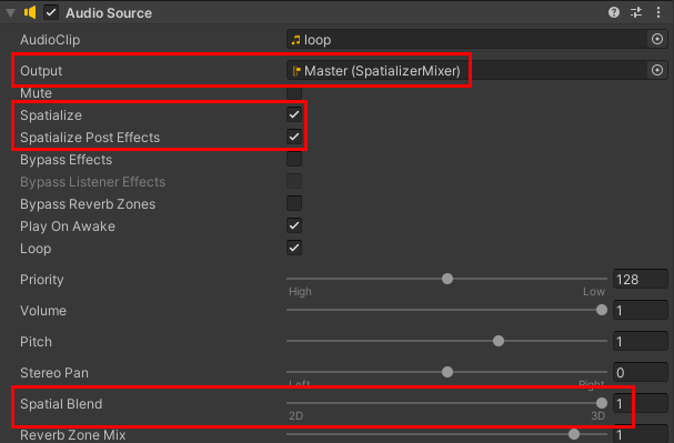 1. If using the Oculus Audio Spatializer, set Output to use the Spatializer mixer.