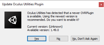 5. If prompted to update to a newer version of the OVRPlugin, click Yes (Figure 09).