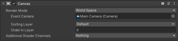 4. In the Inspector, change its type to World Space and drag the Main Camera into the Event Camera property slot (Figure 02).
