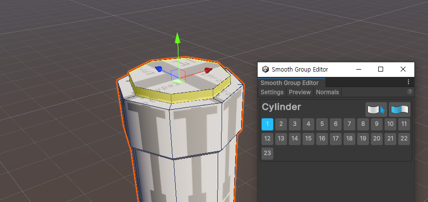 Unlike basic shapes, where the smooth effect is applied automatically, this effect is not applied to the added surface. Select the Smooth Group Editor tool and select the Smooth Group (default value: 1) in use to apply roundness to the surface.