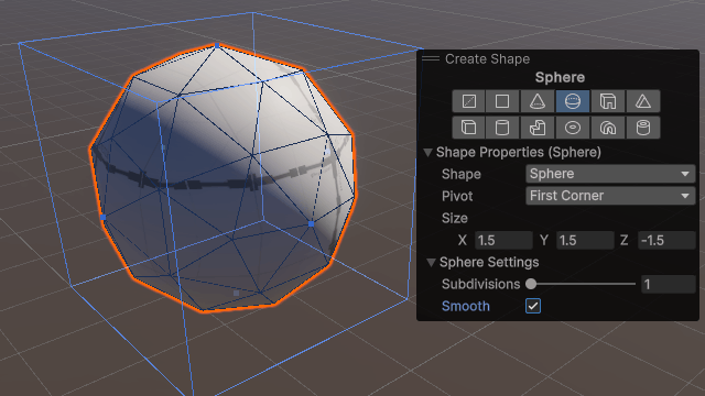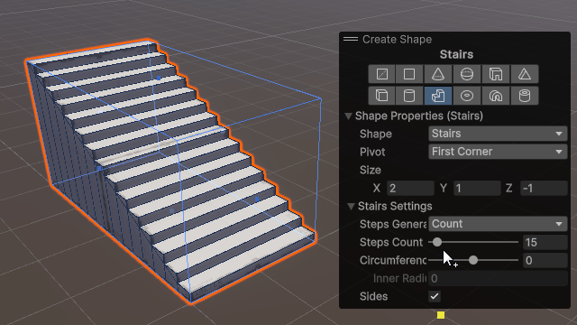 3D meshes have pivots, which function as their center points. You can change the pivot type for the shape you are drawing in the Create Shape window. Pivot types in ProBuilder are as follows: