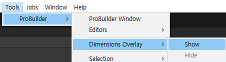 To enable the size overlay, go to Tools > ProBulider > Dimensions Overlay > Show.