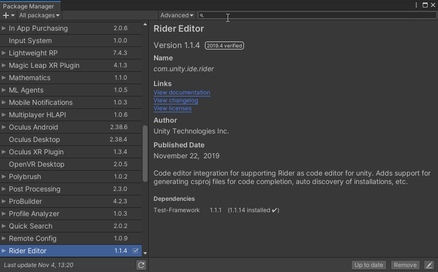 The project relies on the Cinemachine package to assist in camera movements. To install the Cinemachine Package, Open the Package Manager (Window > Package Manager), search for and install the Cinemachine Package.
