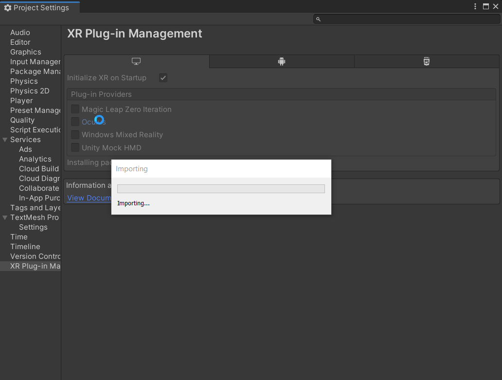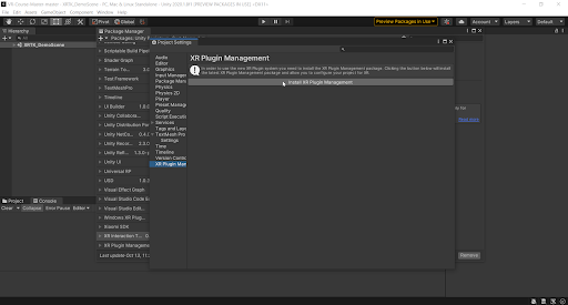 2. Once installed, navigate to Edit > Project Settings > XR Plugin Management and click Install XR Plugin Management.