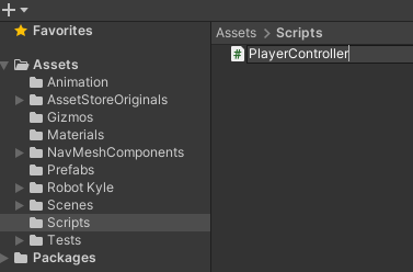 2. Create a new C# script called “PlayerController” and open it in your code editor.