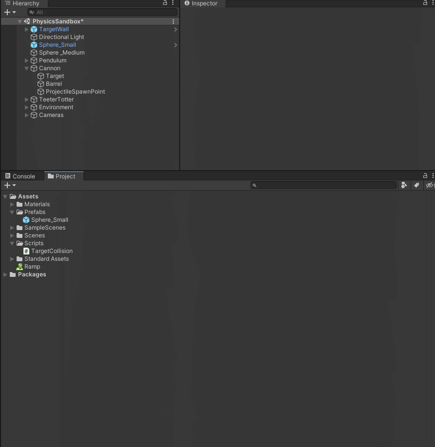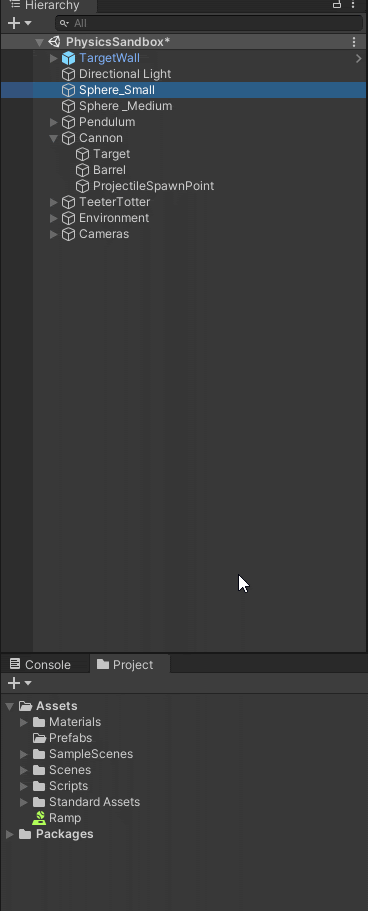 5. Turn the Sphere_Small GameObject into a prefab by dragging it into the Project window.