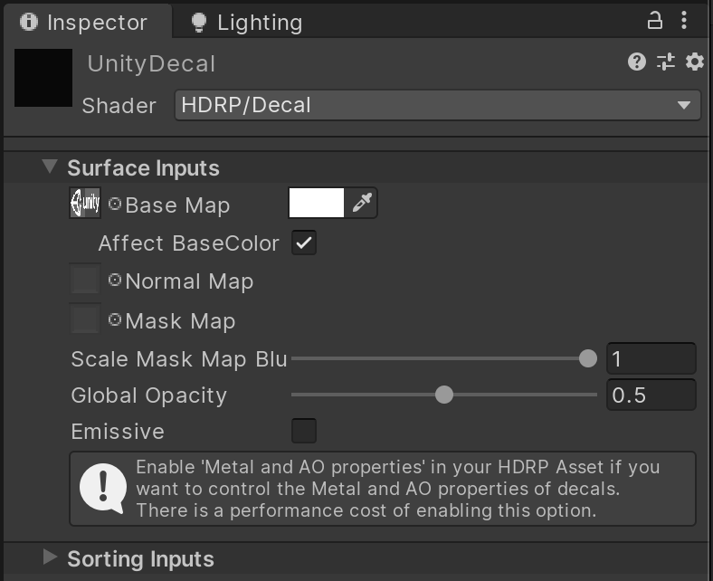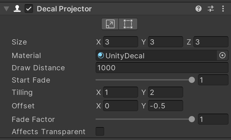 2. Create and place a Decal Projector in the scene that displays the Decal material