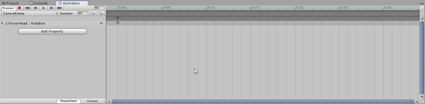 Open the Animation window. With the GameObject Roverhead selected in your Hierarchy, create an Animation Clip.
